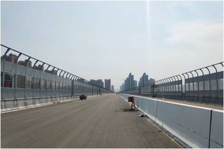 在后期施工配合中,項(xiàng)目設(shè)計(jì)組成員積極主動為建設(shè)方與施工單位提供服務(wù),解決施工中遇到的技術(shù)難題,受到了建設(shè)方與施工單位的一致認(rèn)可。在昆明路西段即將建成之際,我公司一分院項(xiàng)目設(shè)計(jì)組成員主動赴現(xiàn)場回訪,協(xié)助施工單位解決鋪裝、護(hù)欄安裝、聲屏障安裝過程中遇到的問題,為昆明路東段后續(xù)施工提供技術(shù)支持與服務(wù),同時也為我公司承攬此類項(xiàng)目積累寶貴經(jīng)驗(yàn)。