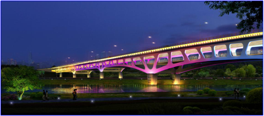 香槐六路灞河橋設計將現(xiàn)代工藝融入到傳統(tǒng)桁架造型之中,集“顏值”與“內(nèi)涵”于一身,具有“新”、“奇”、“便”的特點:“新”即雙層橋面,人車分行;“奇”即造型與橋下景觀遙相呼應;“便”即為城市東北部地區(qū)提供了一條快速通道。