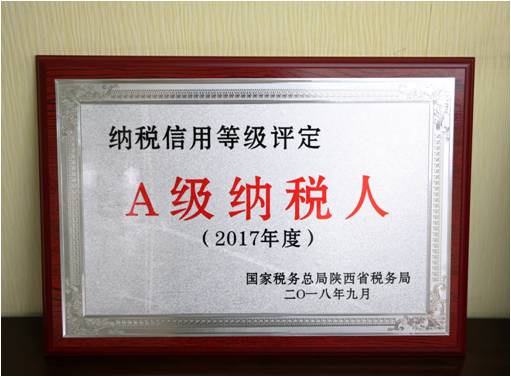 我國納稅信用等級(jí)分為A、B、M、C、D五級(jí),A級(jí)為最高等級(jí),是企業(yè)依法誠信納稅、積極配合的重要標(biāo)志,對(duì)樹立企業(yè)信譽(yù)、拓寬業(yè)務(wù)有著重要意義。2018年上半年,國家稅務(wù)總局西安碑林區(qū)稅務(wù)局以我公司日常納稅評(píng)估和稅源比對(duì)為基礎(chǔ),對(duì)公司納稅信用情況進(jìn)行綜合考評(píng),經(jīng)過區(qū)、市、省稅務(wù)機(jī)構(gòu)層層考核和篩選,最終我公司被評(píng)定為“陜西省2017年度納稅信用A級(jí)納稅人”。