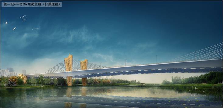 東西城市軸線(xiàn)沱江大道(龍泉驛區(qū)界-金簡(jiǎn)黃快速路)全長(zhǎng)約36km,本次重點(diǎn)征集橋梁設(shè)計(jì)方案,其中沱江一號(hào)橋全長(zhǎng)約1482m、二號(hào)橋全長(zhǎng)約580m、三號(hào)橋全長(zhǎng)約3514m。項(xiàng)目組一經(jīng)成立,立即開(kāi)展工作,針對(duì)征集文件中技術(shù)指標(biāo)與要求認(rèn)真研判,趕赴現(xiàn)場(chǎng)踏勘收集資料,考慮到三座大橋的地標(biāo)性作用及景觀要求,通過(guò)對(duì)周邊交通路網(wǎng)深入分析研究與推導(dǎo),項(xiàng)目組成員思想發(fā)生了多次強(qiáng)烈碰撞。為了達(dá)到最佳的景觀效果,在橋型設(shè)計(jì)上他們多次與建筑專(zhuān)業(yè)人員溝通交流,并集思廣益在全院范圍內(nèi)征集方案,但效果都不盡人意。在思維陷入瓶頸時(shí),他們繼續(xù)在成都文化內(nèi)涵方面深入挖掘,三星堆文化、金沙文化、竹簡(jiǎn)等文化元素為他們帶來(lái)了設(shè)計(jì)靈感,并將這些文化元素提煉融入到橋梁設(shè)計(jì)中,充分體現(xiàn)了設(shè)計(jì)的原創(chuàng)性。