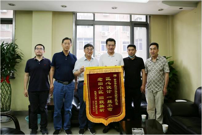 6月23日上午,陜西建工集團第一建設(shè)集團有限公司商務(wù)部部長雷濤一行蒞臨我公司,將一面寫有“匠心設(shè)計一絲不茍 老舊小區(qū) 舊貌換新”的錦旗送到我公司副總經(jīng)理王社平手中,以感謝項目設(shè)計組成員的精心設(shè)計、優(yōu)質(zhì)服務(wù)和辛苦付出,并表達了雙方開展更深層次合作的美好期望。