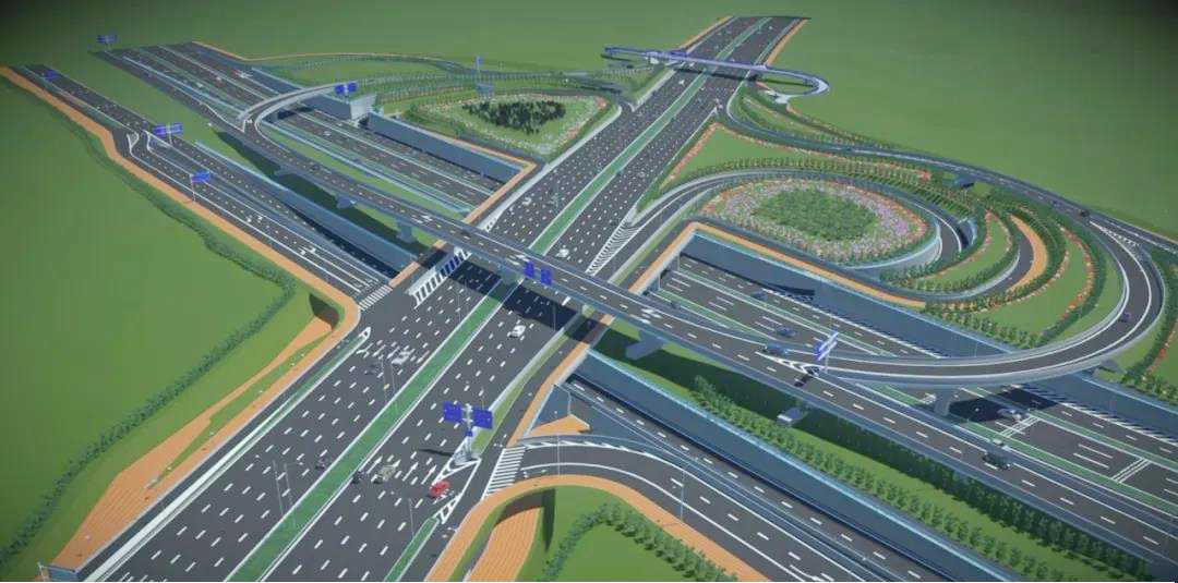 元朔大道-西銅高速立交位于西銅城市快速路與元朔大道交叉口處,立交周邊用地條件限制較多,西側(cè)為西銅城市快速路30m景觀綠帶,東側(cè)為現(xiàn)狀延西高速高架橋、天然氣門站及調(diào)壓站,立交平面布置及下穿延西高速高架橋限制條件嚴(yán)苛。立交選型經(jīng)過多輪方案比選,最終確定采用立交形式為苜蓿葉+半定向匝道三層全互通式立交,其中西銅城市快速路主線下穿元朔大道,將元朔大道置于地面層,有效解決了下穿延西高速凈空問題。立交形式新穎,立交功能完善。