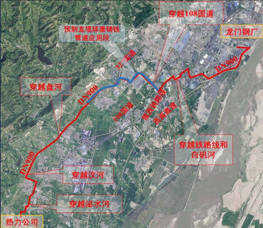 韓城市清潔供暖-余熱利用長輸供熱管網(wǎng)工程項目,是我省第一個工業(yè)余熱綜合利用長距離清潔供熱工程,也是我公司新能源設(shè)計分院2023年重點設(shè)計項目之一,設(shè)計過程中得到建設(shè)單位韓城市產(chǎn)投集團、總包單位中建四局的一致好評。該項目總投資6.27億元,工程熱源為陜西龍門鋼鐵有限公司工業(yè)余熱,項目長輸管網(wǎng)長約24km。項目達產(chǎn)后將徹底改變韓城市集中供熱熱源的結(jié)構(gòu)型式,龍門鋼廠余熱代替熱力公司燃煤鍋爐實施長距離集中供熱,年可節(jié)約標煤約10.49萬噸、減少二氧化碳排放量約30.38萬噸、減少粉塵排放量31.84噸、減少二氧化硫排放量76噸、減少氮氧化物排放量159.54噸。該項目的實施既是韓城市踐行“雙碳”目標、推進黃河流域生態(tài)保護和高質(zhì)量發(fā)展的重要舉措,也是我公司老工業(yè)城市工業(yè)余熱清潔化供熱的一種新探索和新嘗試,對于工業(yè)余熱清潔化綜合利用、踐行“雙碳”目標的實現(xiàn)具有重要的示范引領(lǐng)意義。