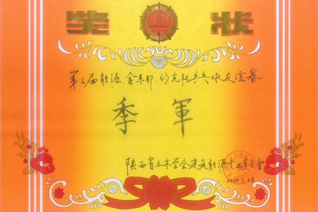 3月2日,陜西省土木學會建筑能源專業(yè)委員會在土門文化宮乒乓球館舉辦了“第三屆能源·金來邦·合達杯·設計院系統(tǒng)乒乓球友誼賽”,本次比賽由來自十家單位組成的12支隊伍參加,我公司乒乓球愛好者組成的市政設計院一隊和土建環(huán)境分院乒乓球愛好者組成的市政設計院二隊參賽,經(jīng)過了循環(huán)賽、淘汰賽、晉級賽和決賽四輪激烈的爭奪,由市政設計院二隊獲得本次友誼賽季軍,范曉莉同志積極參與組織協(xié)調(diào)及現(xiàn)場服務工作,被授予“體育風尚獎”。