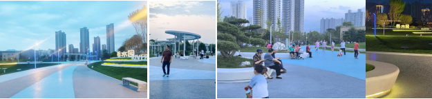 項(xiàng)目設(shè)計(jì)充分利用現(xiàn)場土方及高差,形成了錯(cuò)落有致的疏林草地,結(jié)合臺地?fù)鯄ΨN植觀賞草階,因地制宜打造郊野生態(tài)景觀;通過蜿蜒曲折的文化景墻、一目了然的標(biāo)識標(biāo)牌,展示清姜河及渭河河流主題文化底蘊(yùn)。同時(shí),依托綠地空間共設(shè)置包括樹池座椅和弧形座椅在內(nèi)的各種休息座椅20組、垃圾桶12個(gè)、標(biāo)識標(biāo)牌25組,為市民提供方便舒適的休憩場所。在集散廣場、園路、節(jié)點(diǎn)等硬質(zhì)鋪裝中均采用透水混凝土、石材等硬質(zhì)透水可回收環(huán)保材料,踐行“雙碳”目標(biāo)。