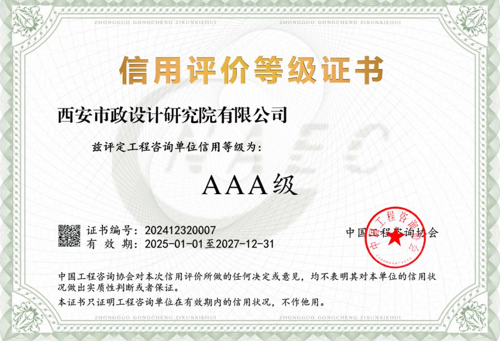 近日,中國(guó)工程咨詢協(xié)會(huì)公布了2024年工程咨詢單位信用評(píng)價(jià)結(jié)果,我公司榮獲工程咨詢單位信用評(píng)價(jià)最高等級(jí)“AAA”級(jí)。